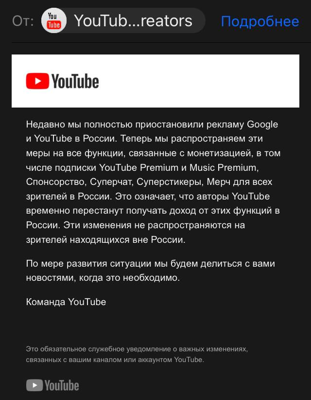 Усім уже відомо, що в Росії блокують Інстаграм Фейсбук Твіттер і Ватсапп. Але до цієї процедури приєднався і Google відтепер росіяни не можуть створювати Google акаунти, але не суть сьогодні ми поговоримо про найбільший майданчик від Google, а саме Ютуб. Так-так саме його швидше за все заблокують в Росії тому що Ютуб заявив про те що припиняє будь-яку монетизацію відеоконтенту для Росії і зупиняє рекламу і як результат немає монетизації і реклами, а це хліб всіх блогерів РФ. До блокування реклами приєднався Інстаграм. Так ось вже багато великих блогерів готуються до переходу на російські майданчики такі як Вк-відео ЯндексДзен та інші.